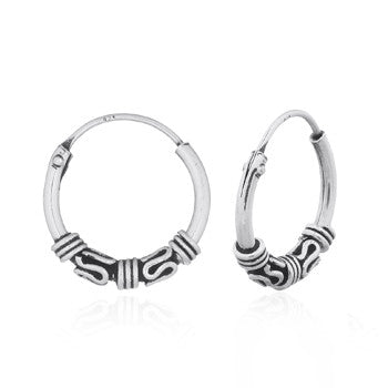 Approx. weight 0.88 g Dimensions (WxHxD) 12x12x2 mm Diameter 12 mm Jewelry Themes Antique Designs, Ethnic / Folklore Material Antiqued, Polished Sterling Silver, Round Wire, Stamped Silver Shape Circle Open Total Drop 12 mm