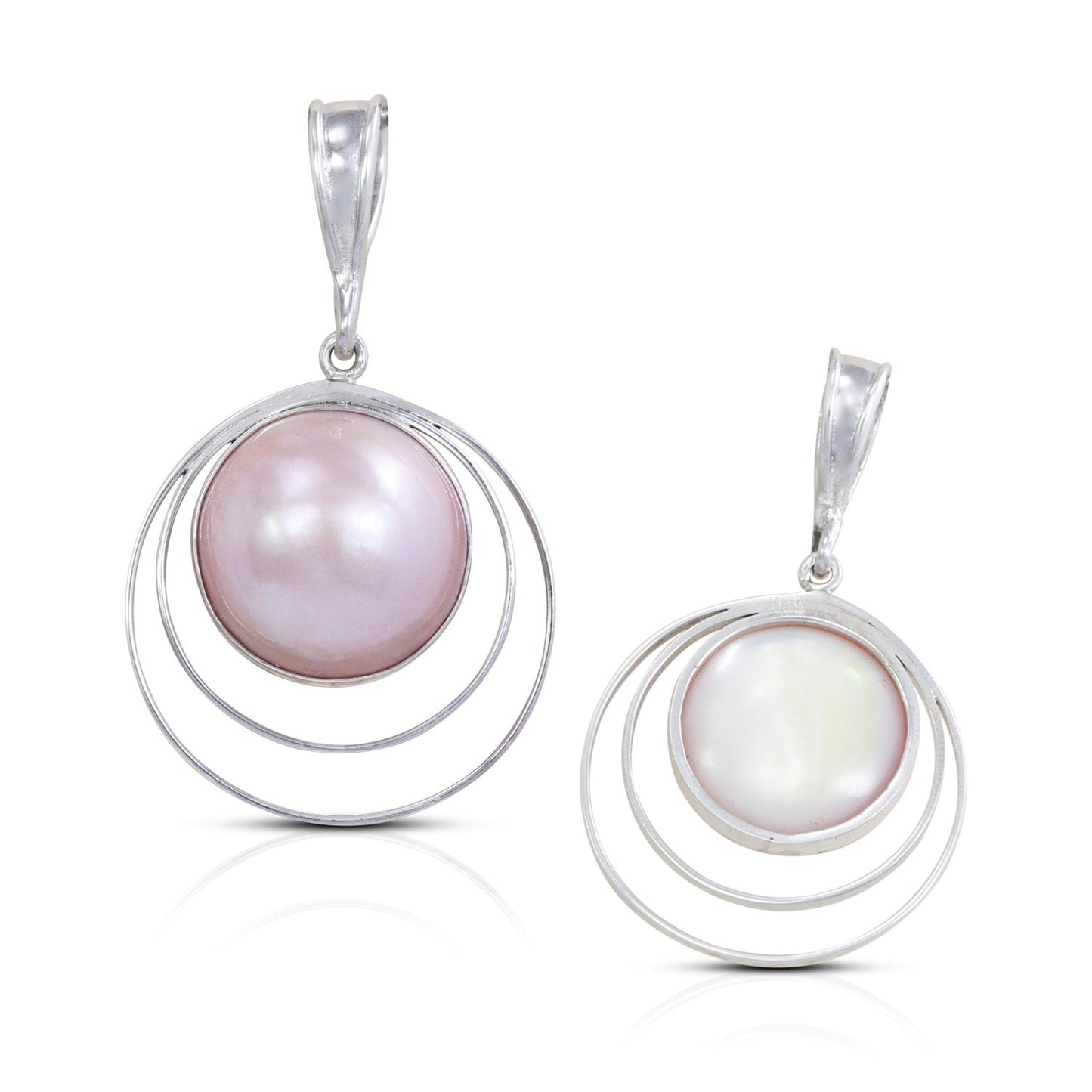 Pink Mabe Elegant Design 925 Sterling Silver Pendant Necklace.