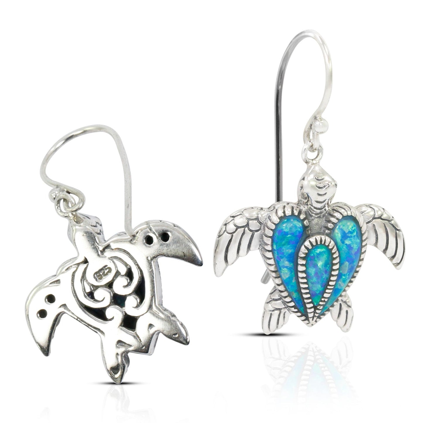 Silver Turtle Earrings 925 Sterling Silver Decorated with Lab Created Opal.