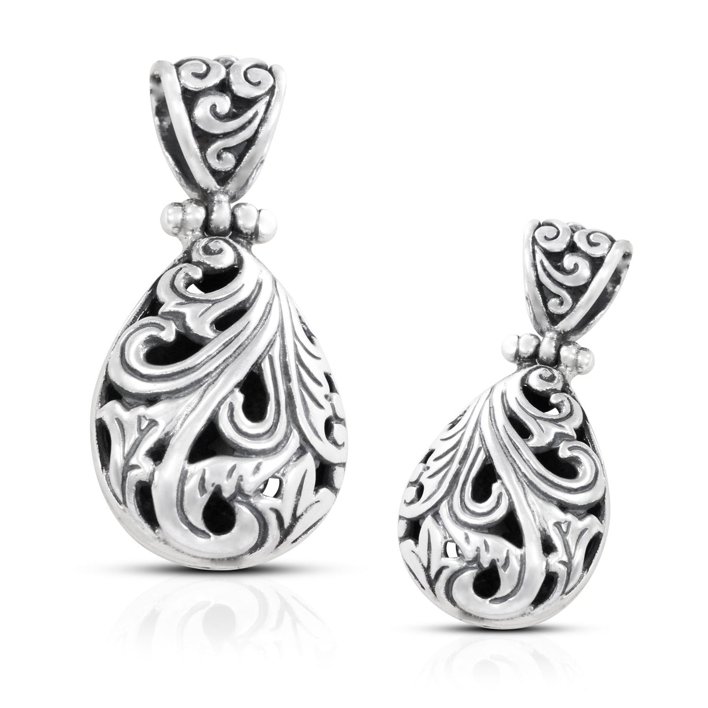 Pendant Necklace 925 Sterling Silver Decorated with Balinese Filigree.